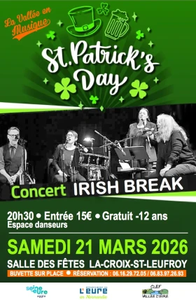 à la Croix St Leuffroy (27) Soirée de la St Patrick avec Irish Break Dates de l'événement: Samedi, 21 Mars, 2026Image: