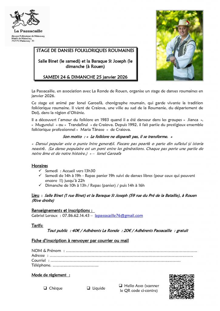 Les 24 et 25 janvier à Rouen (76) Stage de danses roumaines avec Ionel Garoàfa, organisé par La Ronde et La Passacaille