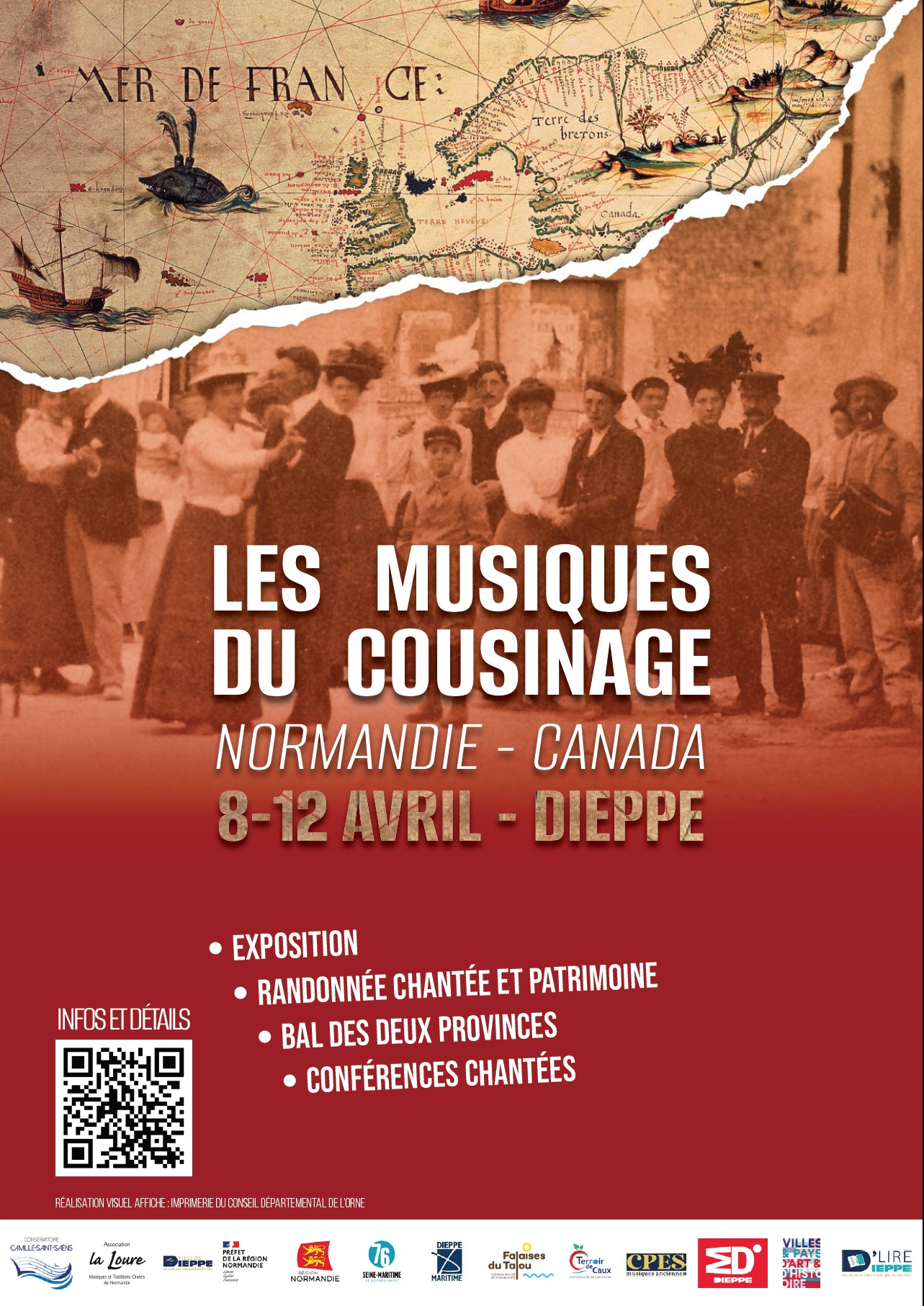 - 11 avril 15h00 : randonnée chantée et patrimoine, en partenariat avec Dieppe Ville d'Art et d'histoire, sur les traces de la relation avec le Canada dans les monuments de la Ville (départ de l'office de tourisme).